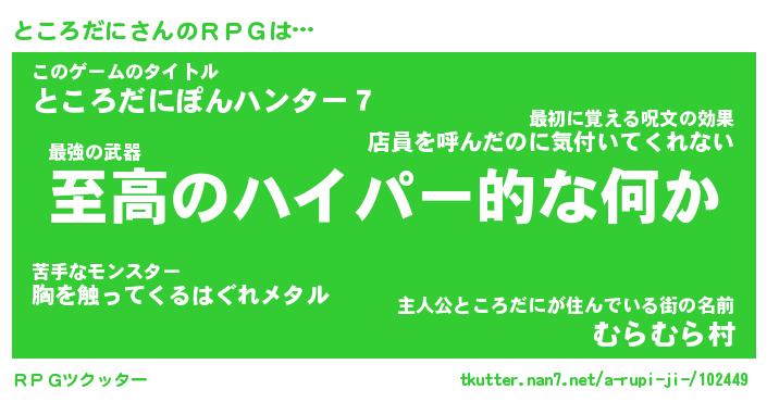 | ファンタジー風あだ名 | 『トコフェル』『エターナルトコロダニー』 |