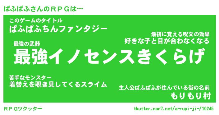 | 意味不明あだ名 | 『ペロリンぱふぱふ』『永久保存ぱふぱふ』 |