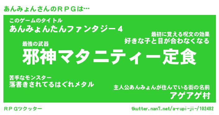 | ファンタジー風あだ名 | 『アンフェル』『エターナルアンミョンー』 |