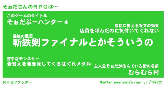 | 伝説のあだ名 | 『伝説の竜騎士そぉだ』 |