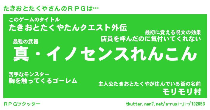 | 男性向けラノベタイトル風あだ名 | 『タキオトタクヤアートオンライン』 |