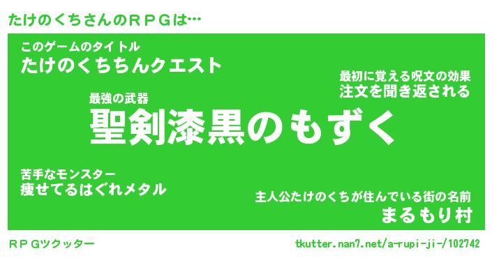 | ファンタジー風あだ名 | 『タケフェル』『エターナルタケノクチー』 |