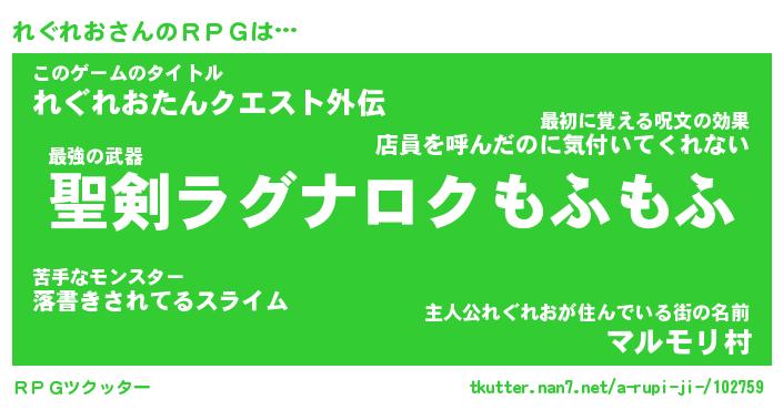 | 男性向けラノベタイトル風あだ名 | 『れぐれおの憂鬱』 |
