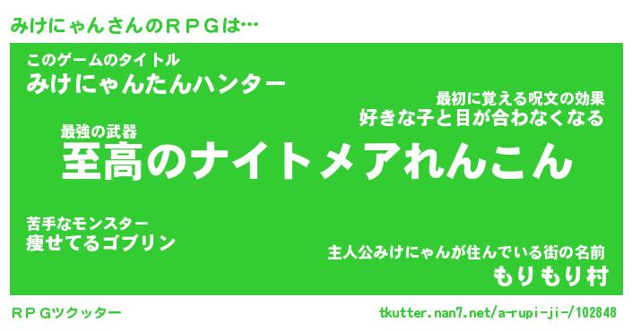 | 意味不明あだ名 | 『ペロリンみけにゃん』 |