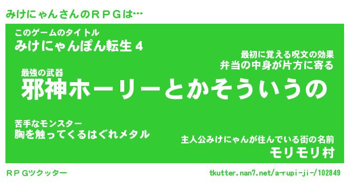| ファンタジー風あだ名 | 『ミケフェル』『エターナルミケニャンー』 |
