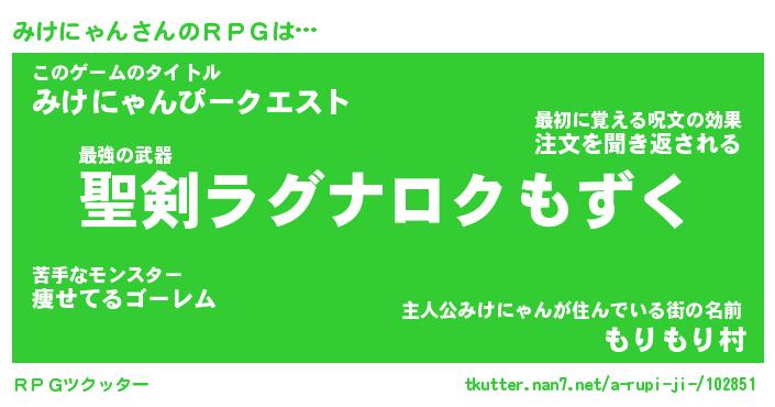 | 伝説のあだ名 | 『伝説の竜騎士みけにゃん』 |