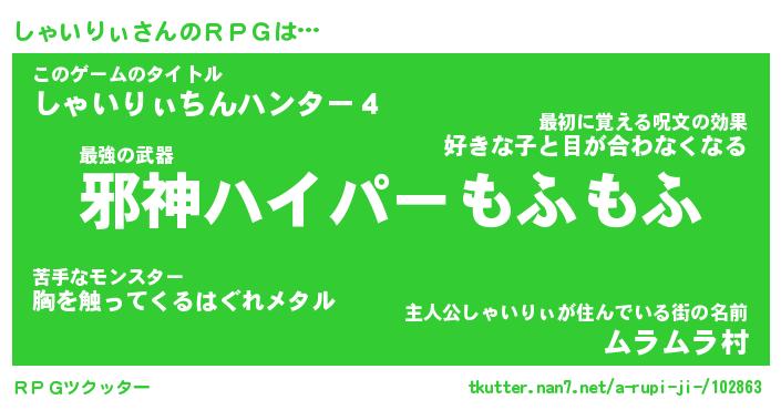 | ヘコむあだ名 | 『しゃにー』『酢こんぶ』『しゃ太郎』 |