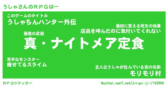 | ファンタジー風あだ名 | 『ウシフェル』『エターナルウシャー』 |
