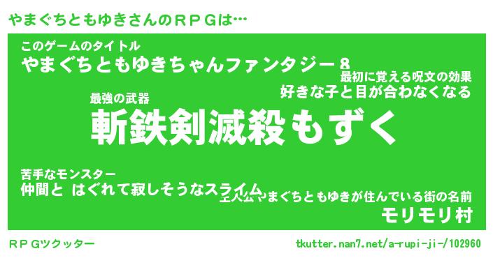 | 伝説のあだ名 | 『伝説のスナイパーやまぐちともゆき』 |