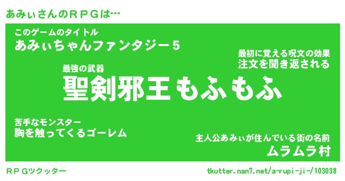| 男性向けラノベタイトル風あだ名 | 『あみぃの憂鬱』 |