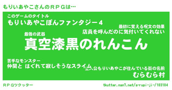 | 男性向けラノベタイトル風あだ名 | 『モリイアヤコアートオンライン』 |