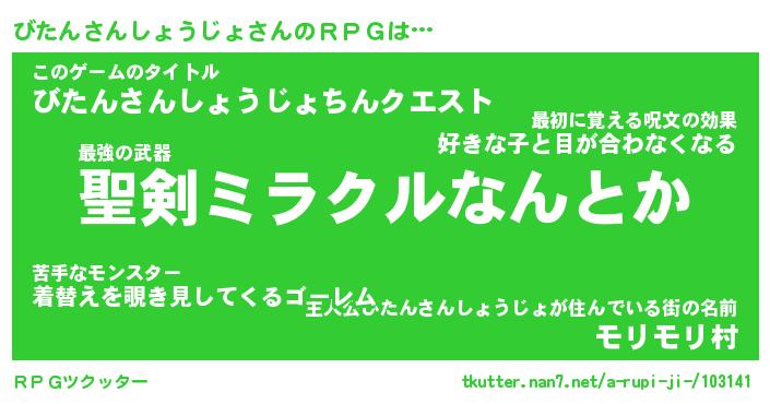 | 男性向けラノベタイトル風あだ名 | 『びたんさんしょうじょの憂鬱』 |