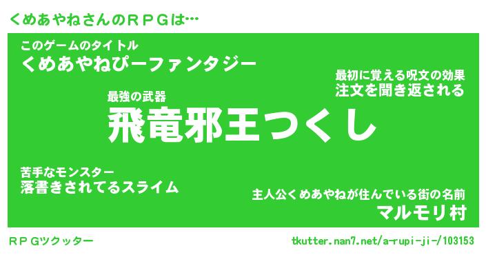 | ファンタジー風あだ名 | 『クメフェル』『エターナルクメアヤネー』 |