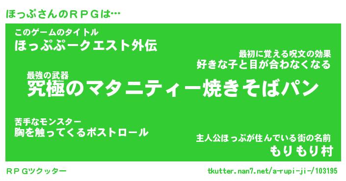 | 男性向けラノベタイトル風あだ名 | 『ほっぷの憂鬱』 |