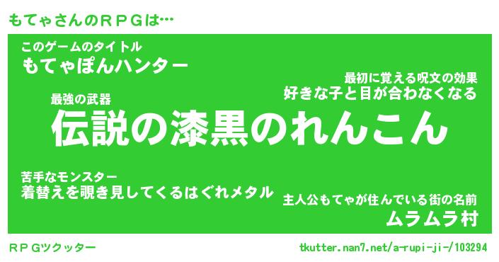 | 男性向けラノベタイトル風あだ名 | 『もてゃの憂鬱』 |