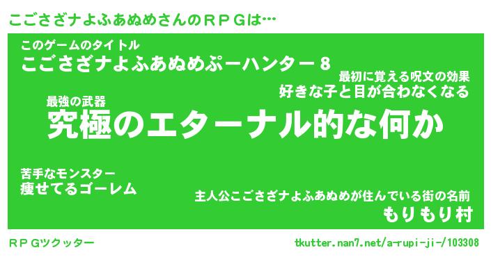 | 女子向けラノベタイトル風あだ名 | 『こごさざナよふあぬめ姫と円卓の騎士』 |
