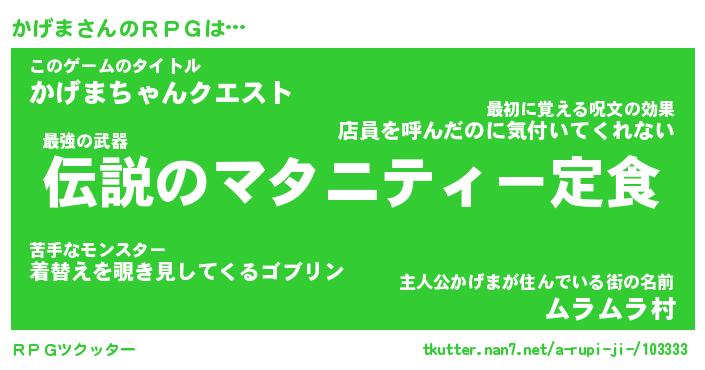 | ファンタジー風あだ名 | 『カゲフェル』『エターナルカゲマー』 |