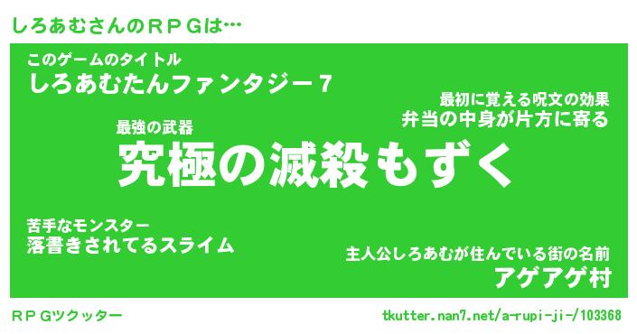 | ヘコむあだ名 | 『しろもー』『つくし』『しろぷりん』 |
