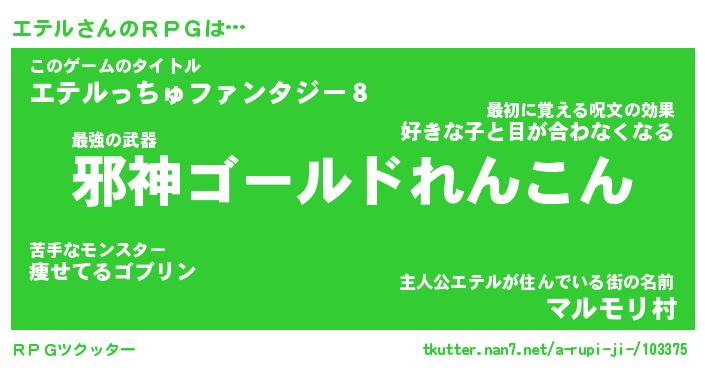 | ファンタジー風あだ名 | 『エテフェル』『エターナルエテルー』 |