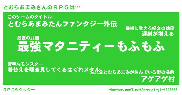 | 胡散臭い通販商品みたいなあだ名 | 『モテモテ間違いなし霊験あらたかなお札…その名も「とむらあまみ」』 |