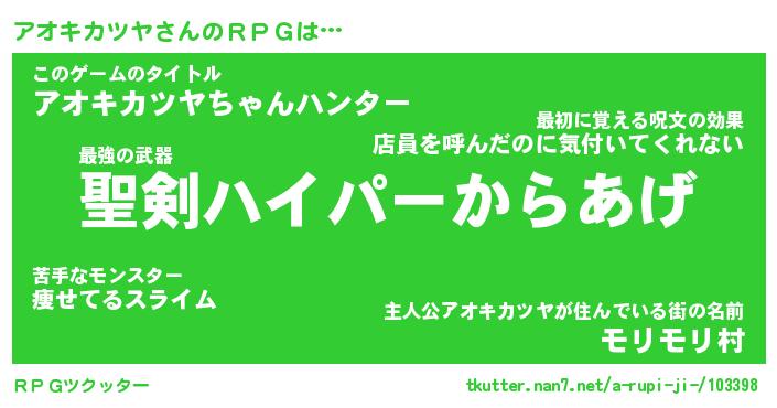 | 伝説のあだ名 | 『伝説の竜騎士アオキカツヤ』 |