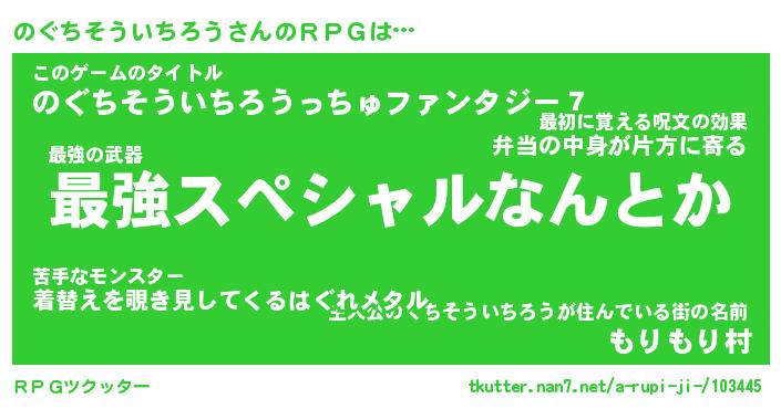 | 男性向けラノベタイトル風あだ名 | 『ノグチソウイチロウアートオンライン』 |