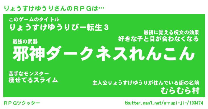 | 伝説のあだ名 | 『封印されし傭兵りょうすけゆうり』 |