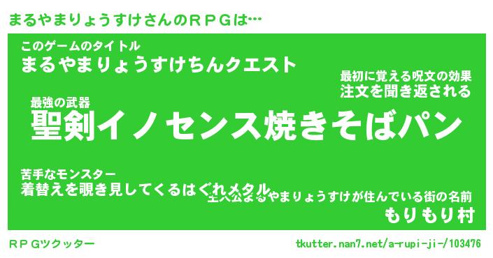 | 肩書あだ名 | 『まるやまりょうすけ御曹司』 |