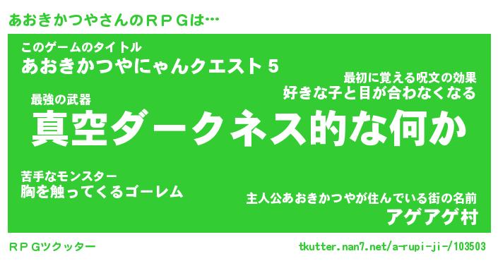 | 男性向けラノベタイトル風あだ名 | 『アオキカツヤアートオンライン』 |