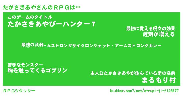 | 伝説のあだ名 | 『不死鳥の竜騎士たかさきあや』 |