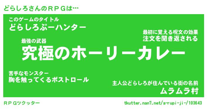 | 意味不明あだ名 | 『ペロリンどらしろ』『永久保存どらしろ』 |