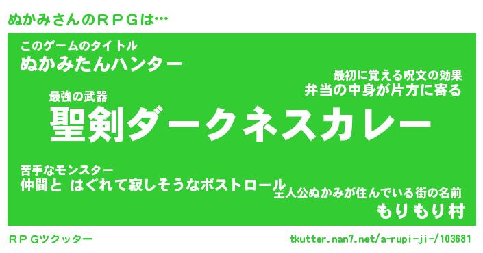 | ヘコむあだ名 | 『ぬかにゅー』『つくし』『ぬかを』 |
