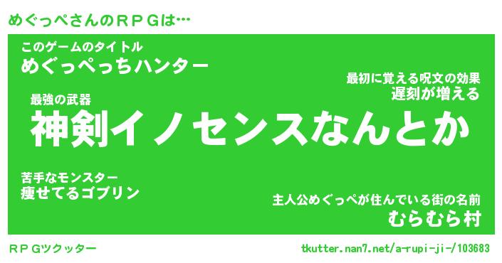 | 男性向けラノベタイトル風あだ名 | 『めぐっぺの憂鬱』 |