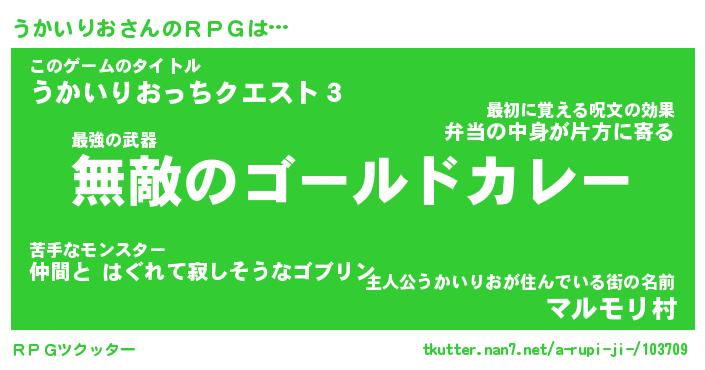 | 伝説のあだ名 | 『封印されし傭兵うかいりお』 |