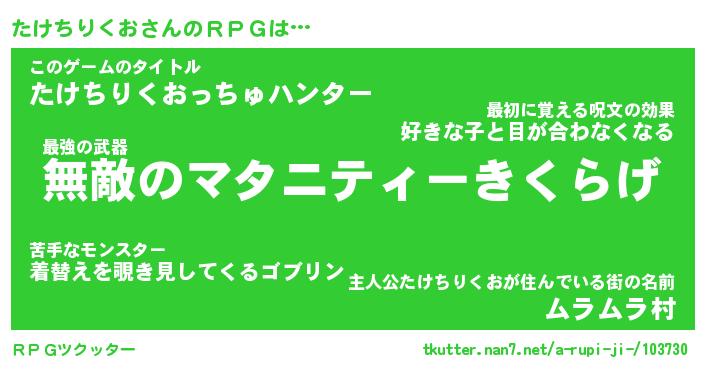 | 肩書あだ名 | 『たけちりくお御曹司』 |