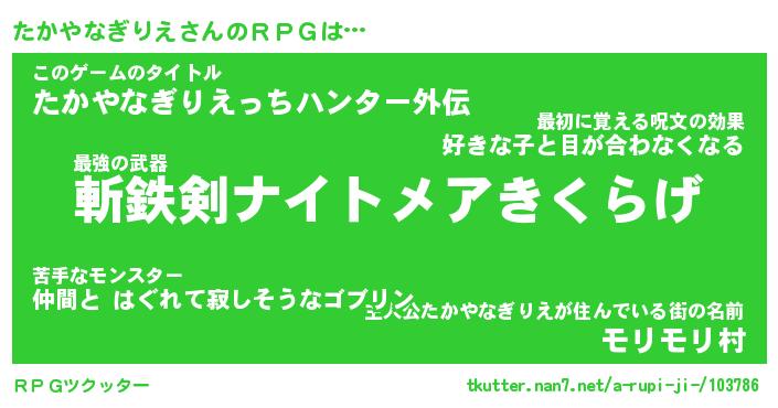 | 胡散臭い通販商品みたいなあだ名 | 『必ず成功する霊験あらたかなお札…その名も「たかやなぎりえ」』 |