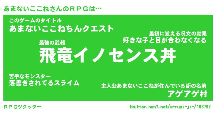 | 男性向けラノベタイトル風あだ名 | 『アマナイココネアートオンライン』 |
