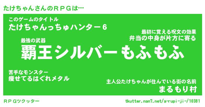 | ファンタジー風あだ名 | 『タケフェル』『エターナルタケチャンー』 |