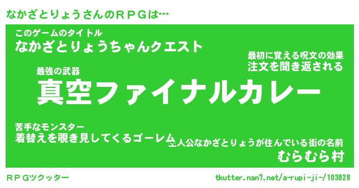 | 男性向けラノベタイトル風あだ名 | 『ナカザトリョウアートオンライン』 |