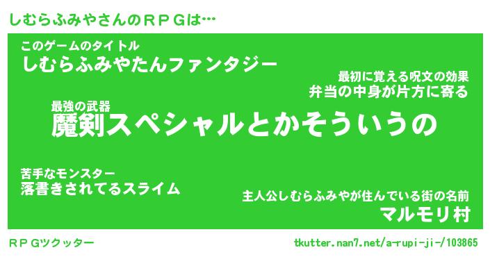 | 男性向けラノベタイトル風あだ名 | 『しむらふみやの憂鬱』 |