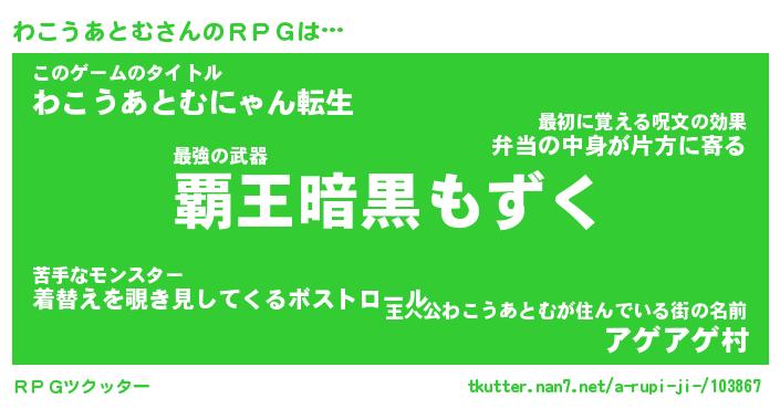 | 男性向けラノベタイトル風あだ名 | 『ワコウアトムアートオンライン』 |