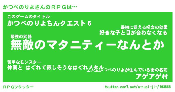 | 男性向けラノベタイトル風あだ名 | 『カツベノリヨアートオンライン』 |