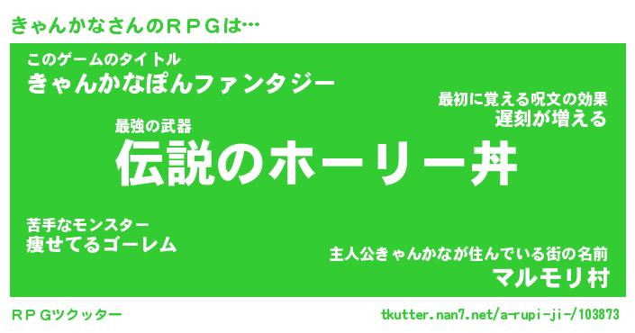 | 料理風あだ名 | 『節約★きゃんかなと油揚げの玉子丼』 |