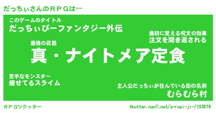 | 胡散臭い通販商品みたいなあだ名 | 『億万長者になれる霊験あらたかなお札…その名も「だっちぃ」』 |