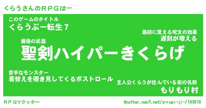 | 男性向けラノベタイトル風あだ名 | 『くらうの憂鬱』 |