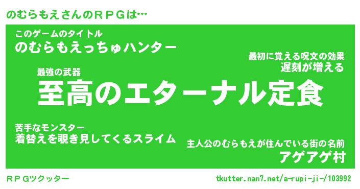 | 男性向けラノベタイトル風あだ名 | 『ノムラモエアートオンライン』 |