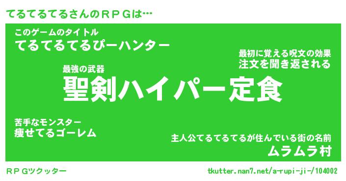 | 男性向けラノベタイトル風あだ名 | 『てるてるてるの憂鬱』 |