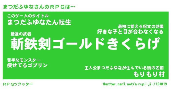 | 男性向けラノベタイトル風あだ名 | 『まつだふゆなの憂鬱』 |