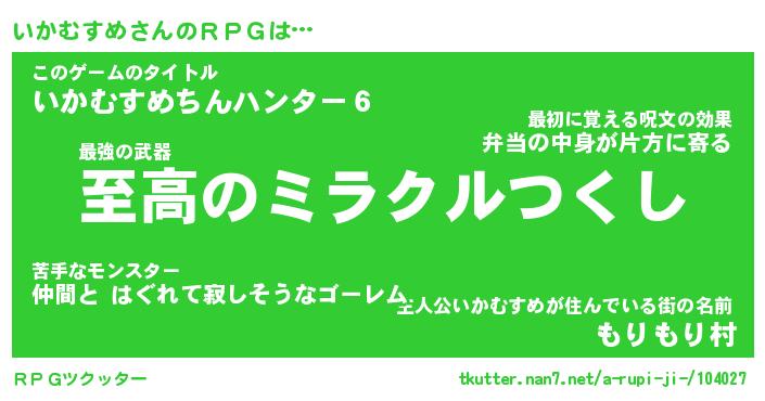 | ファンタジー風あだ名 | 『イカフェル』『エターナルイカムスメー』 |