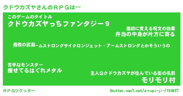 | 男性向けラノベタイトル風あだ名 | 『クドウカズヤアートオンライン』 |